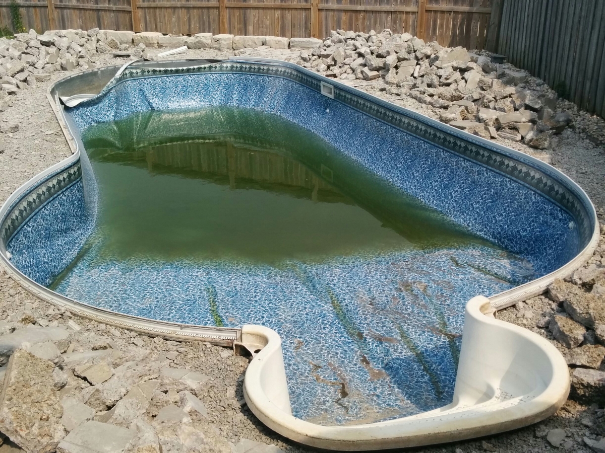 Before we installed a new liner at this Mississuaga pool.