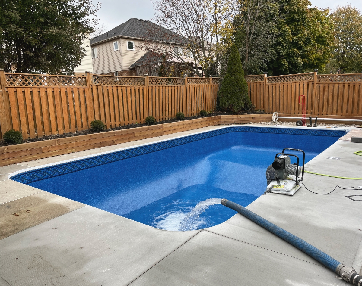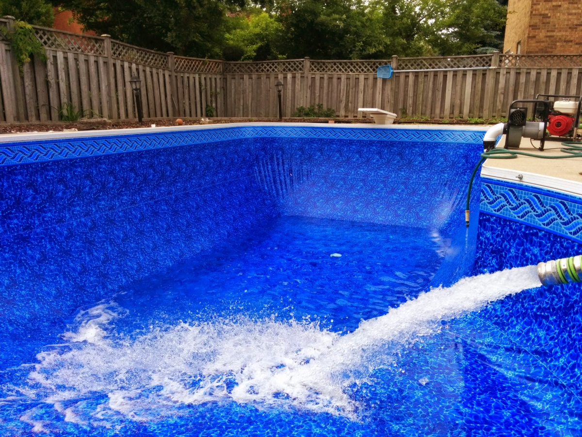 Mississauga pool filling after installing a new liner.