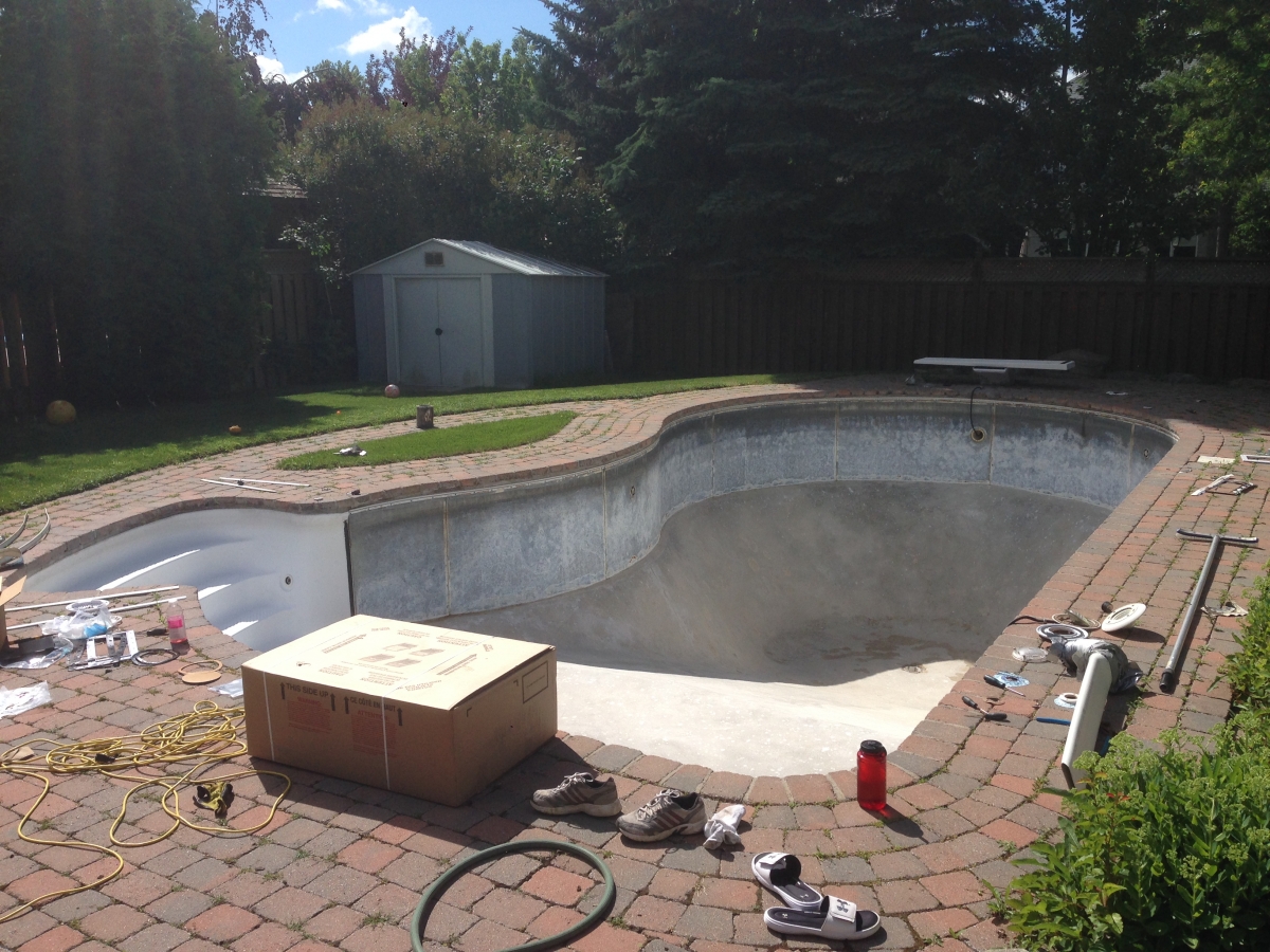 Before we installed a new liner at this Mississuaga pool.